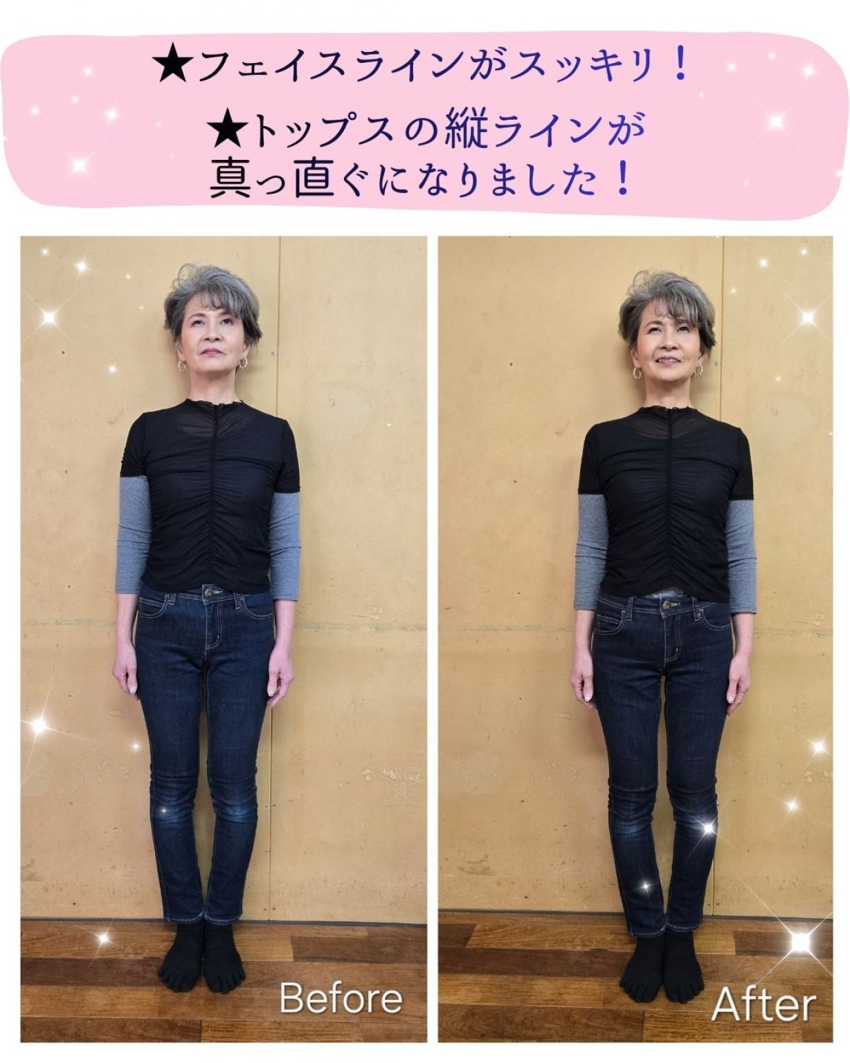 4.変化の確認(After) レッスン後の姿勢と歩き方を再度撮影します。
