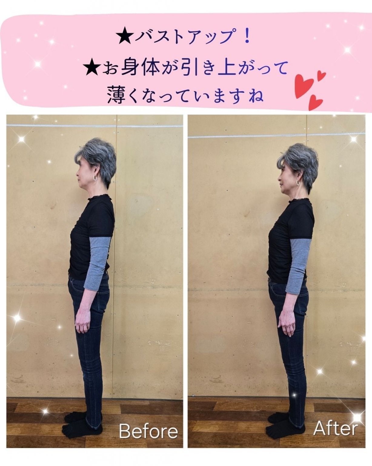 6.ビフォーアフターの比較 写真と動画を見比べ、ご自身の変化を実感していただきます。驚きの変化を、ぜひお楽しみに!