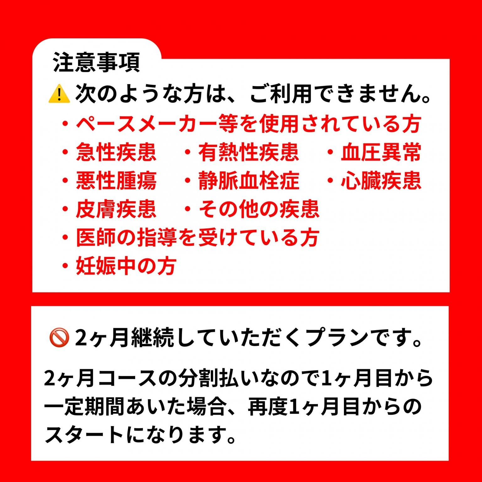 🚫 2ヶ月継続していただくプランです。2ヶ月コースの分割払いなので1ヶ月目から一定期間あいた場合、再度1ヶ月目からのスタートになります。
