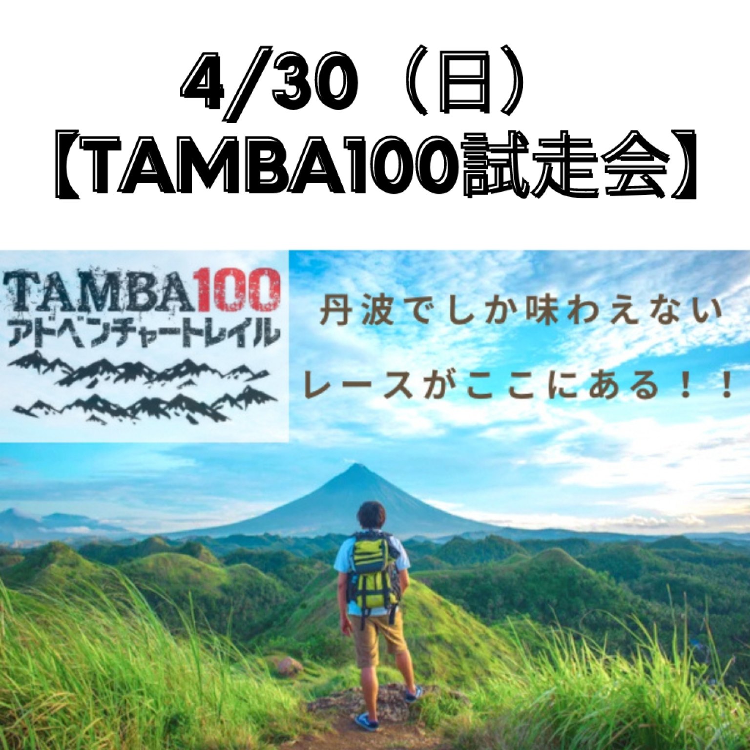 4/30(日)TAMBA100(100mile&100K)核心部 試走会 ※高ポイント還元 ※大会エントリー(入金)済の方は当日1000円分ポイントにてキャッシュバックします。実質1500円での参加。