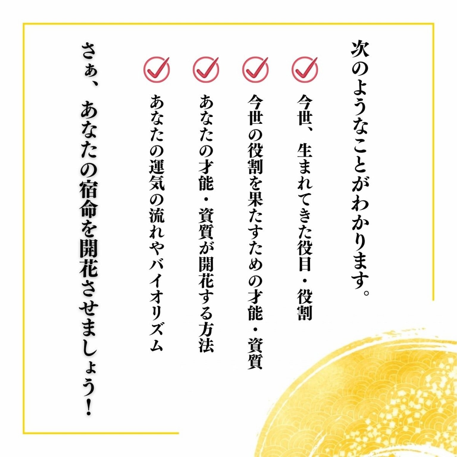 ※ 宿命表などを事前にデータでお送りいたしますので、必要があればメモをとりながらお聞きください。