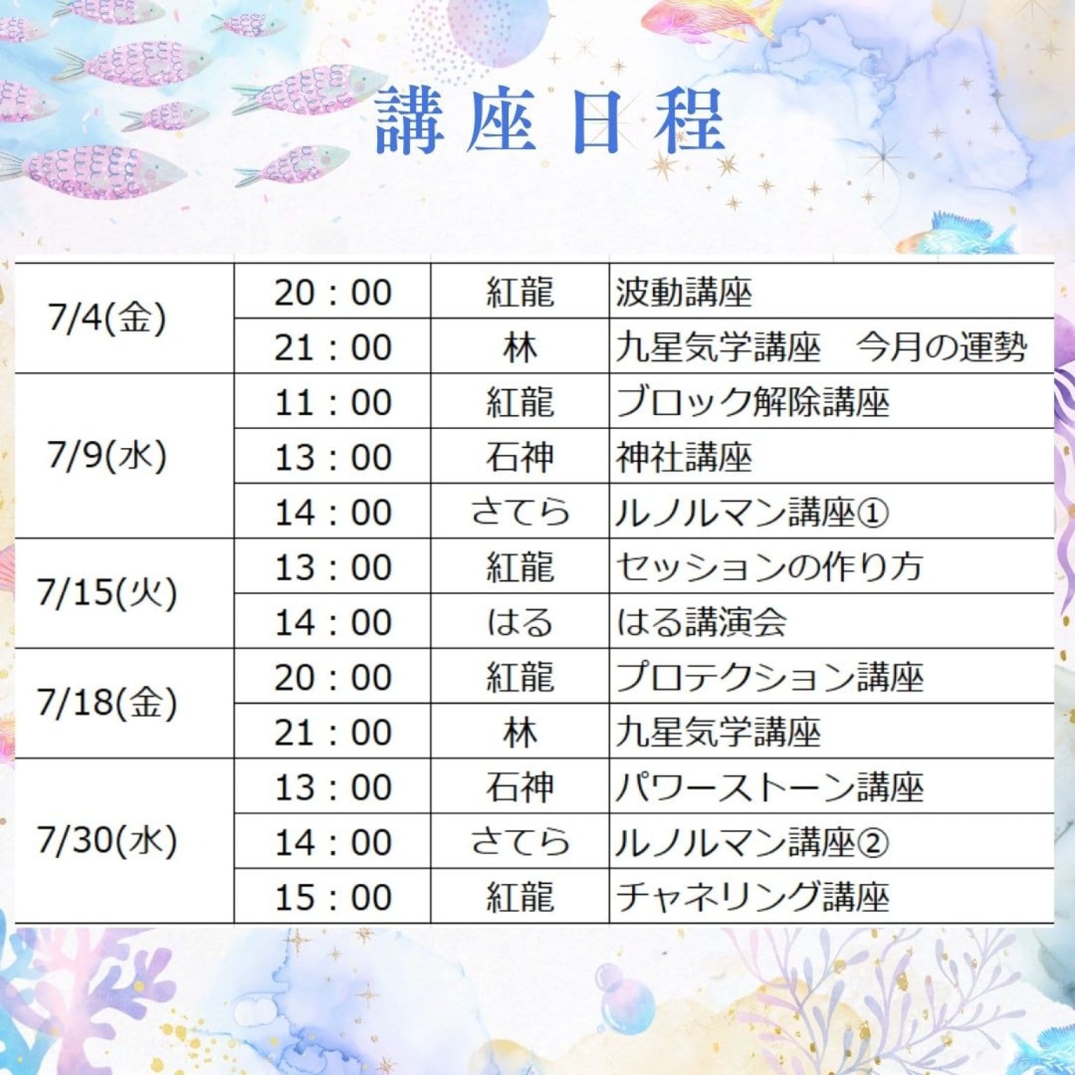 【今月の講座日程】