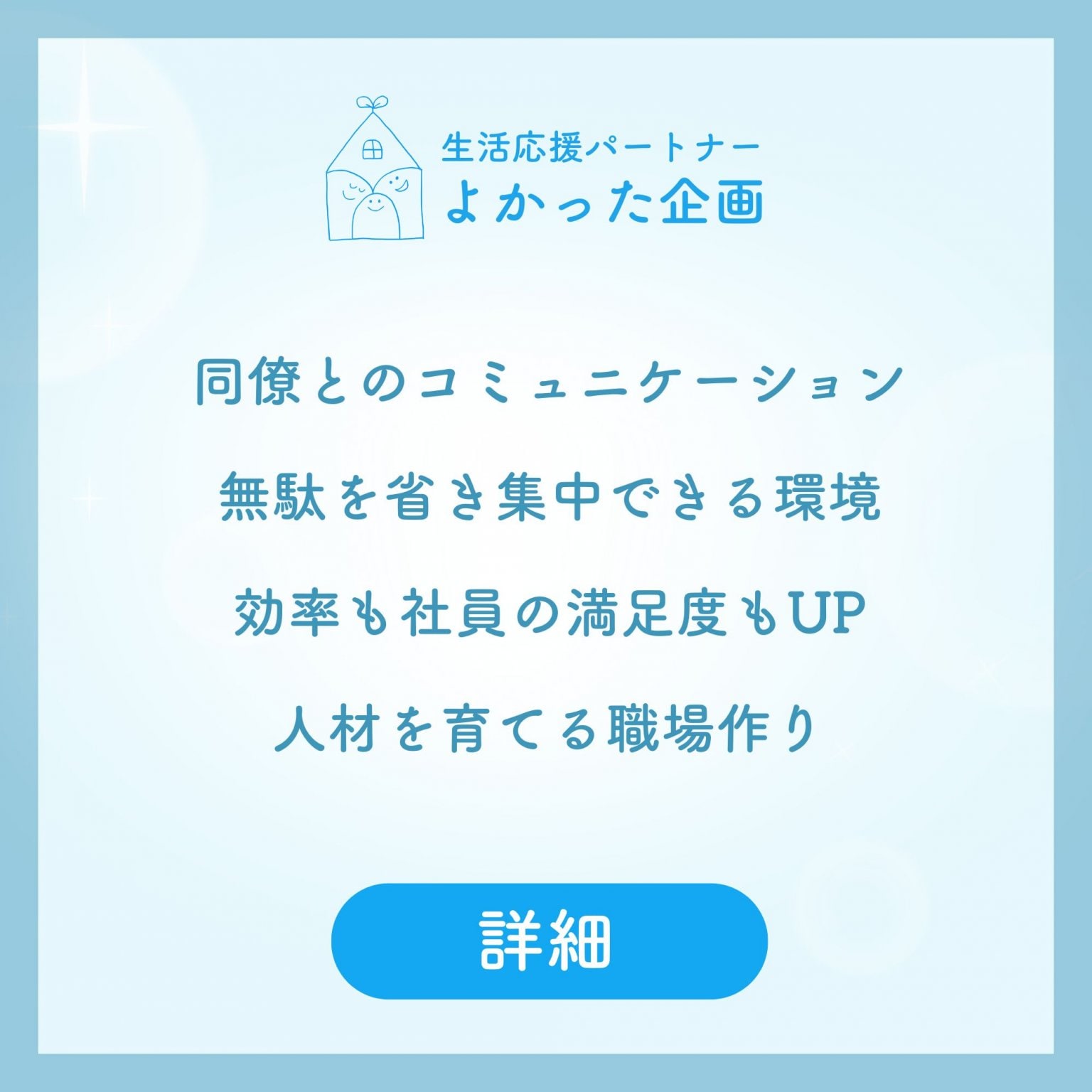 生活応援パートナーよかった企画を起業。モノ・ヒト・ココロにしっかりと向き合い、休息が取れ自己実現を可能にする、安心安全な居住空間創作のサポートや、働きやすい職場環境実現のサポートなどを行なっている。