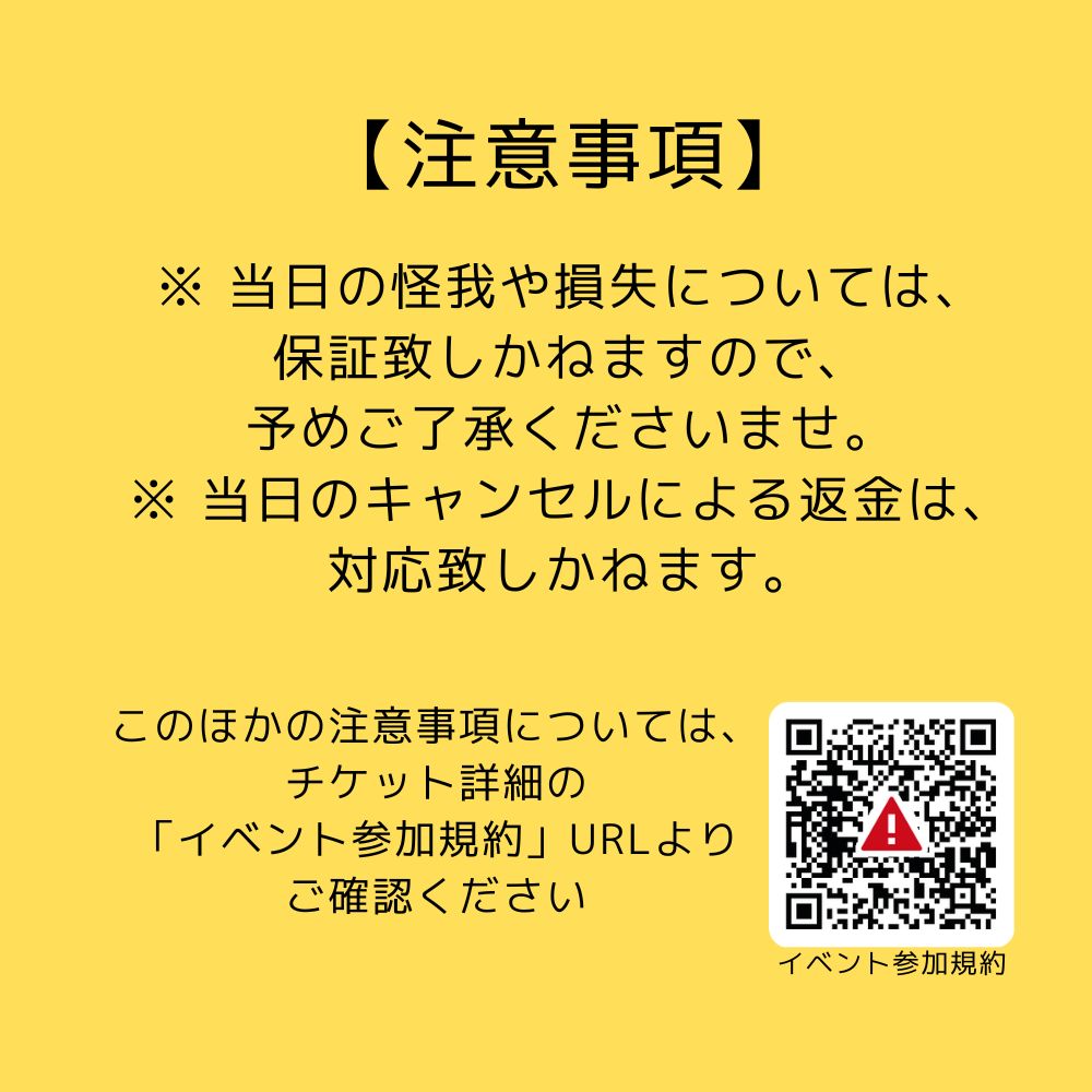 ※ 当日の怪我や損失については、保証致しかねますので、予めご了承くださいませ。