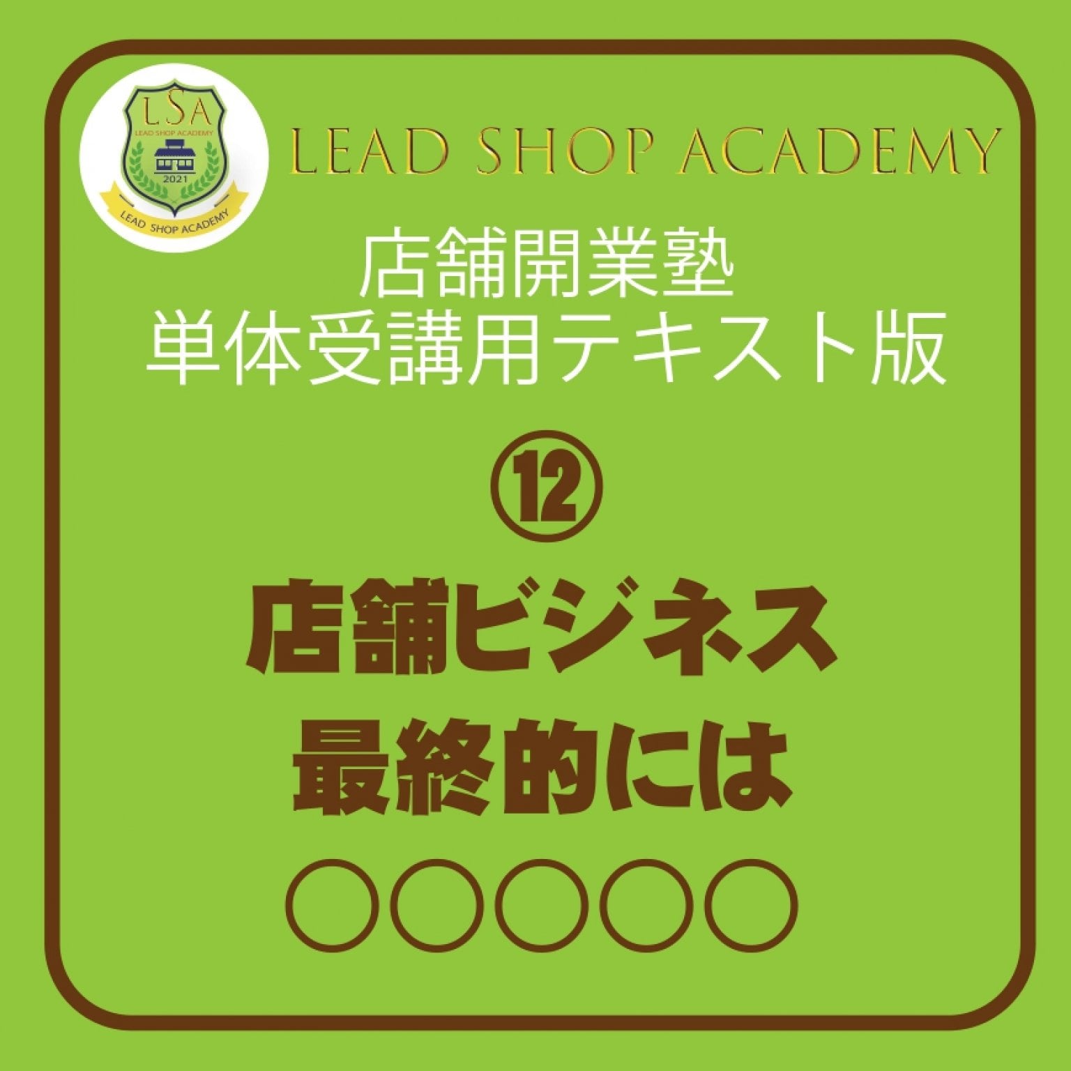 【店舗開業塾|⑫店舗ビジネス最終的には○○○○○編】