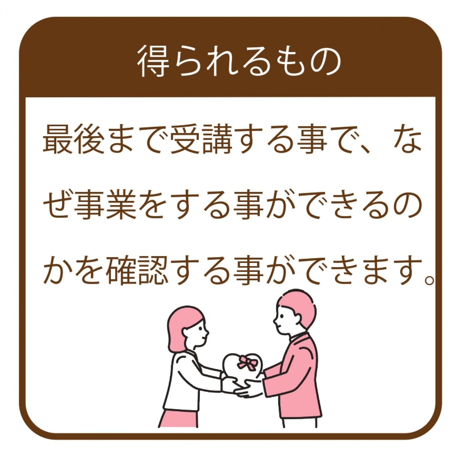 ◆最後まで受講する事で、なぜ事業をする事ができるのかを確認する事ができます。