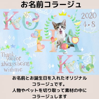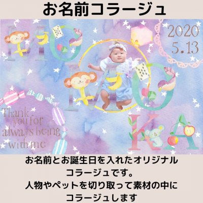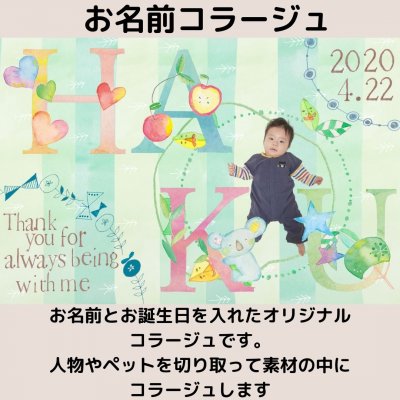 ③こちらで切り取り加工とお名前、お誕生日を配置して画像を作成し、メールに添付して画像を送らせていただきます。