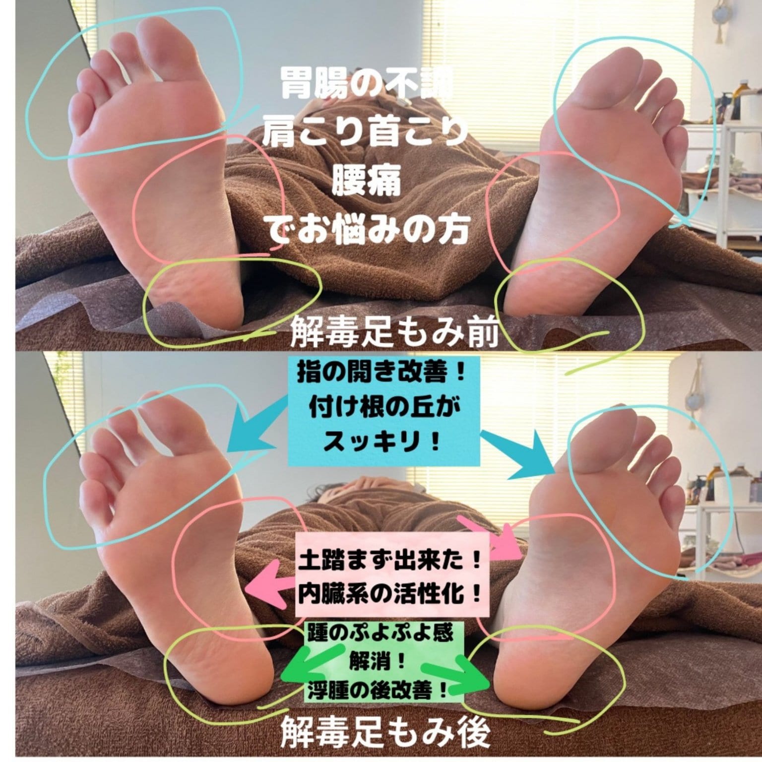 そして女性特有のお悩みであるPMS、生理痛、生理不順なども解毒足もみで整えていけます。