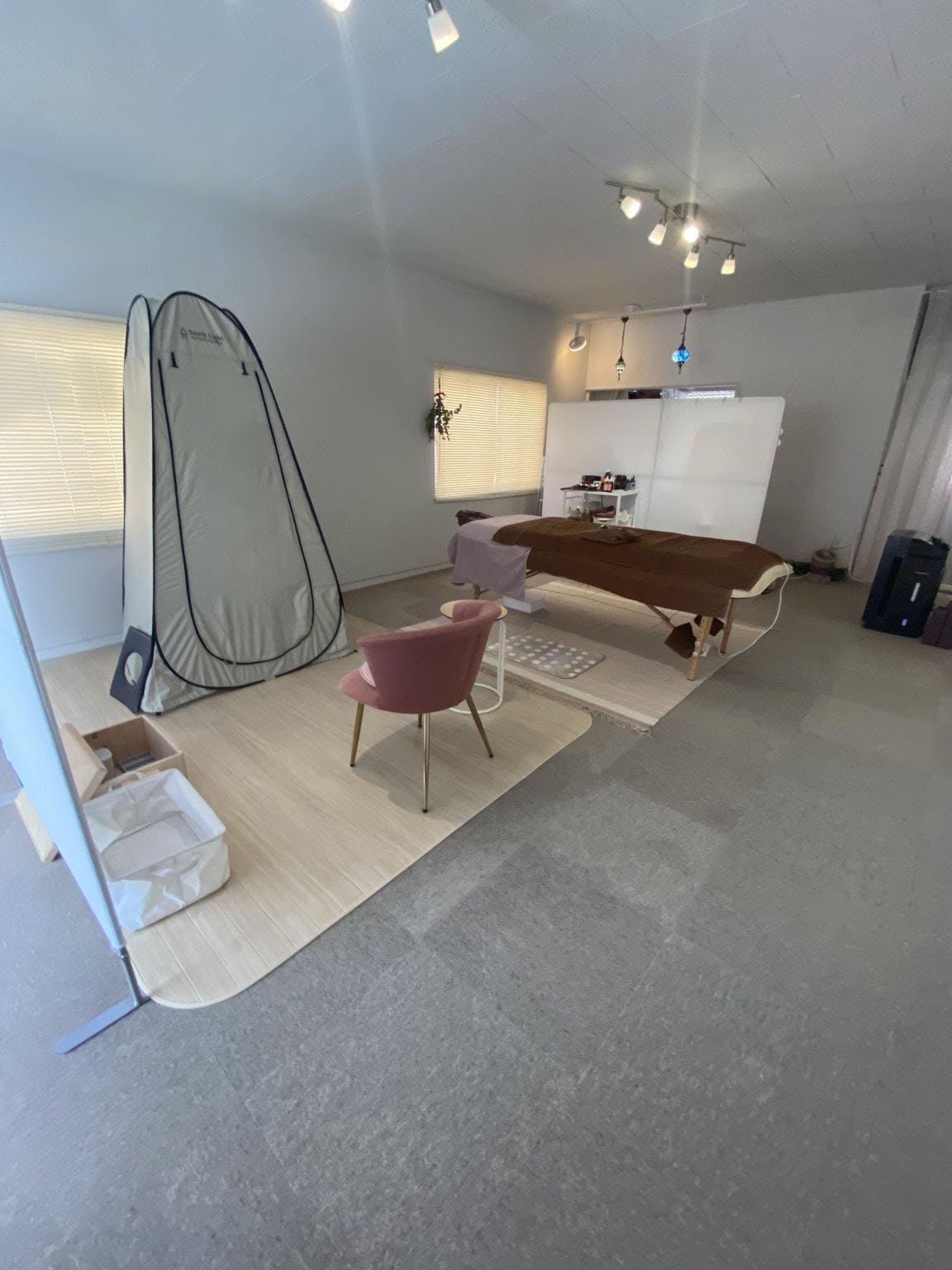 解毒足もみ後にクロモジミスト蒸しでリラックスしながら更にデトックスしていきます。