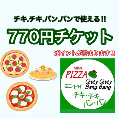 ミニピザのお店チキ.チキ.バン.バンで使える770円ウェブチケットです。