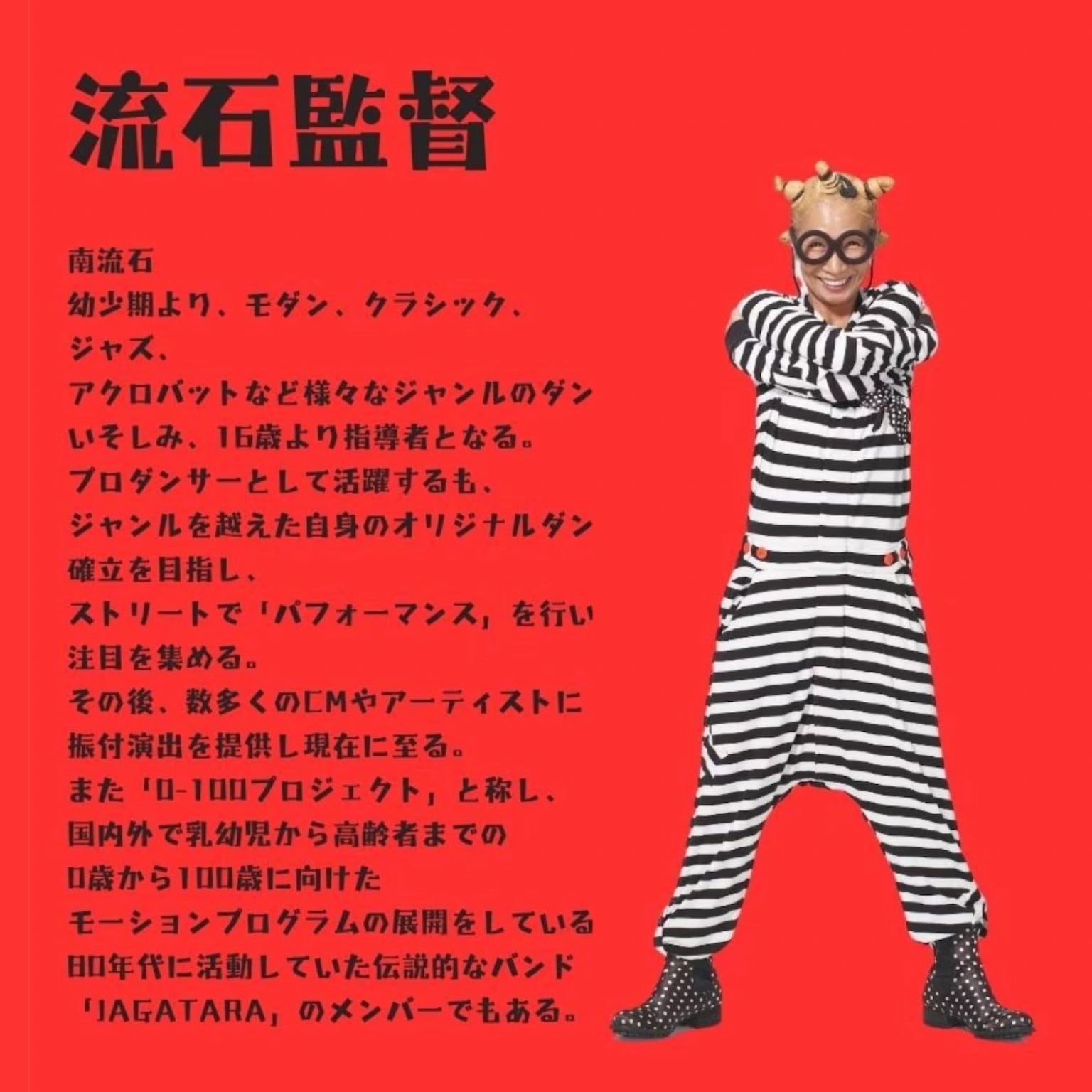 振付家 ダンサー。幼少期より、モダン、クラシック、ジャズ、アクロバットなど様々なジャンルのダンスにいそしみ、16歳より指導者となる。プロダンサーとして活躍するも、ジャンルを越えた自身のオリジナルダンスの確立を目指し、ストリートで「パフォーマンス」を行い注目を集める。その後、数多くのCMやアーティストに振付演出を提供し現在に至る。また「0-100プロジェクト」と称し、国内外で乳幼児から高齢者までの0歳から100歳に向けたモーションプログラムの展開をしている。80年代に活動していた伝説的なバンド「JAGATARA」のメンバーでもある。