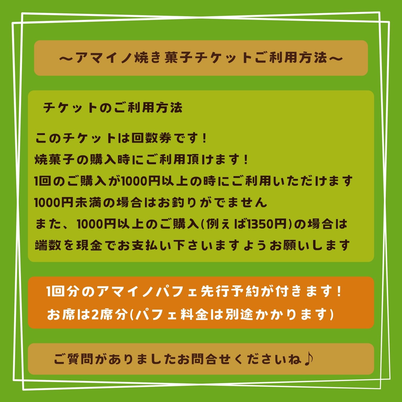 現地払い専用、アマイノ焼菓子回数券です!