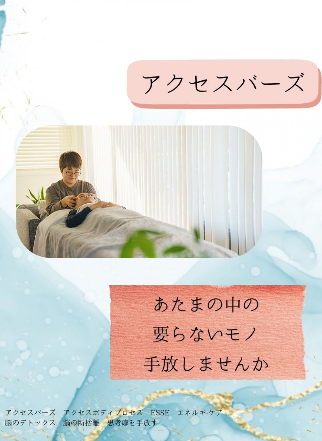 【アクセスバーズ】脳の断捨離、脳のデトックスとも呼ばれ、考え過ぎな方やついついいつも考えことをしてしまう方におすすめのエナジー。