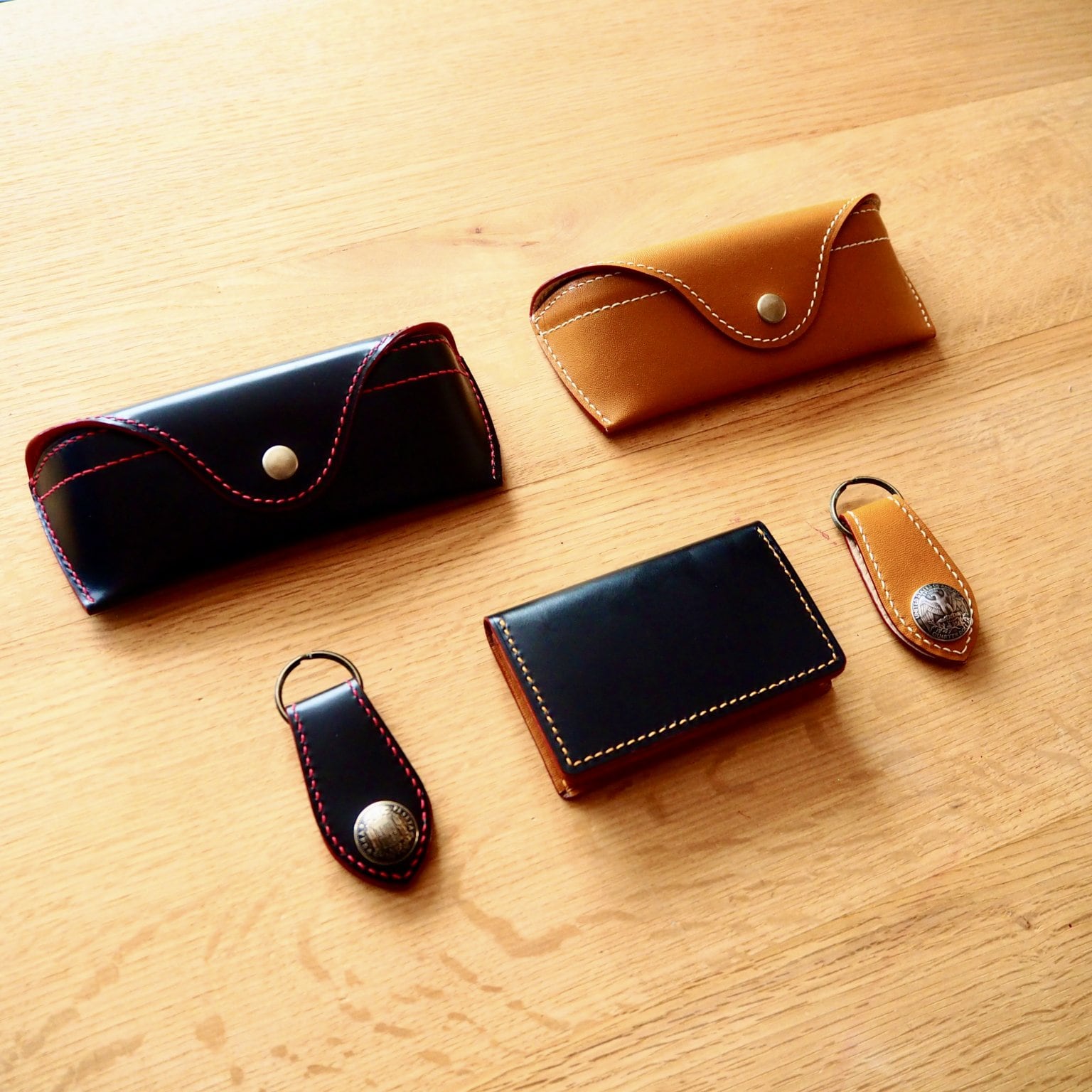 財布、ペンケース、パスケース、タッセル、キーホルダー等を作らせて頂きました。