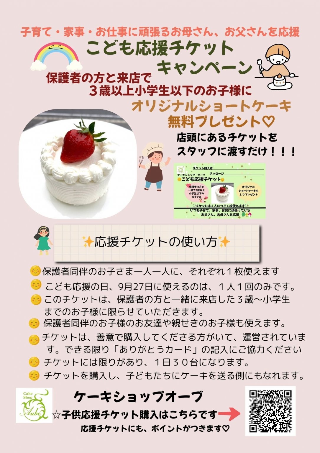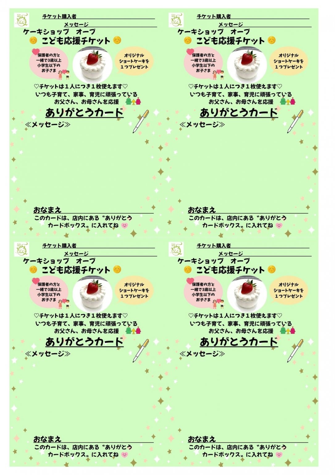 《ケーキショップ オーブ 子ども応援チケット》