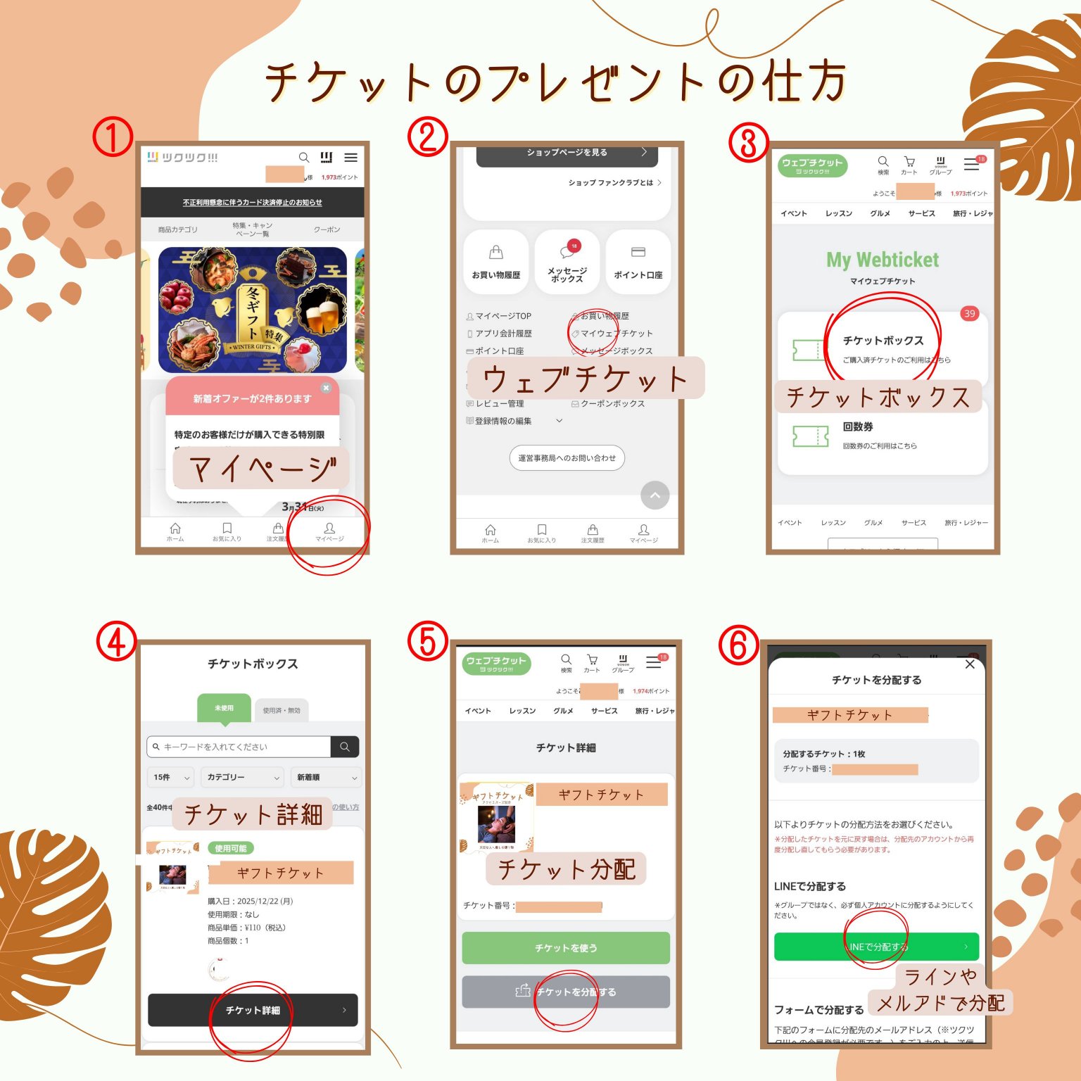 チケット詳細→チケットをプレゼントしたい方へ分配してください!