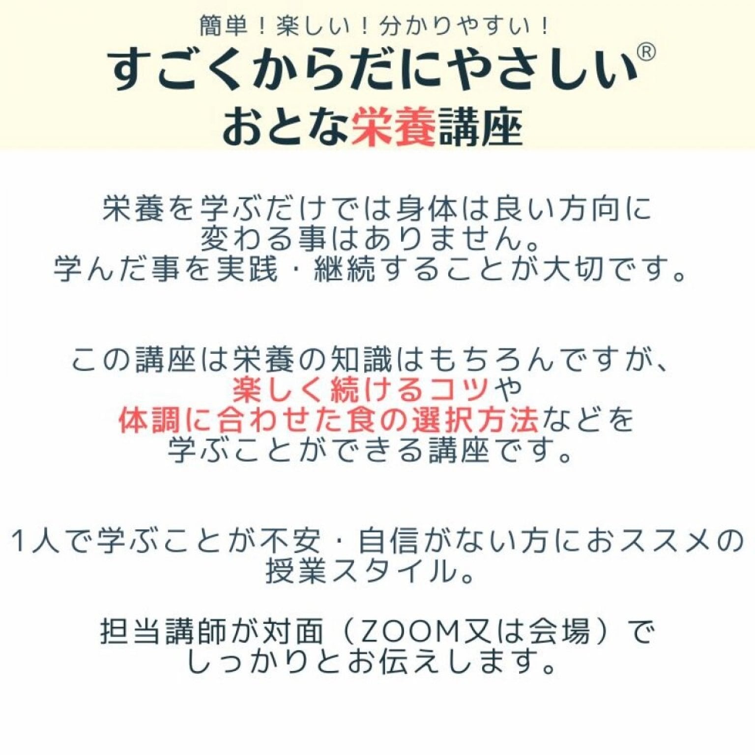 【簡単!楽しい!分かりやすい!すごくからだにやさしい®おとな栄養講座】