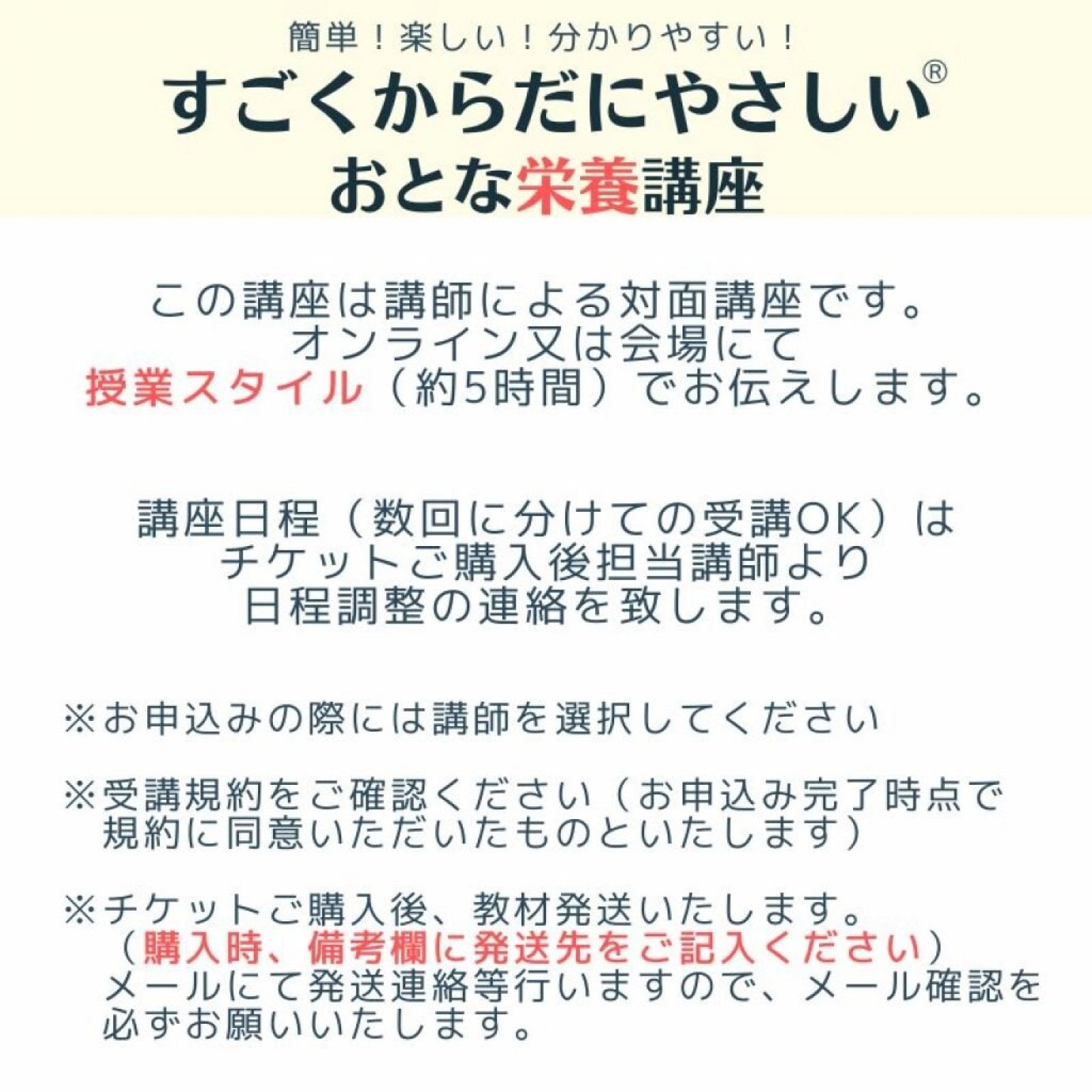 ※受講規約(チケット詳細の「写真をもっと見る」からご確認ください)をご確認の上お申込み下さい。お申込み完了時点で受講規約に同意いただいたものといたします。