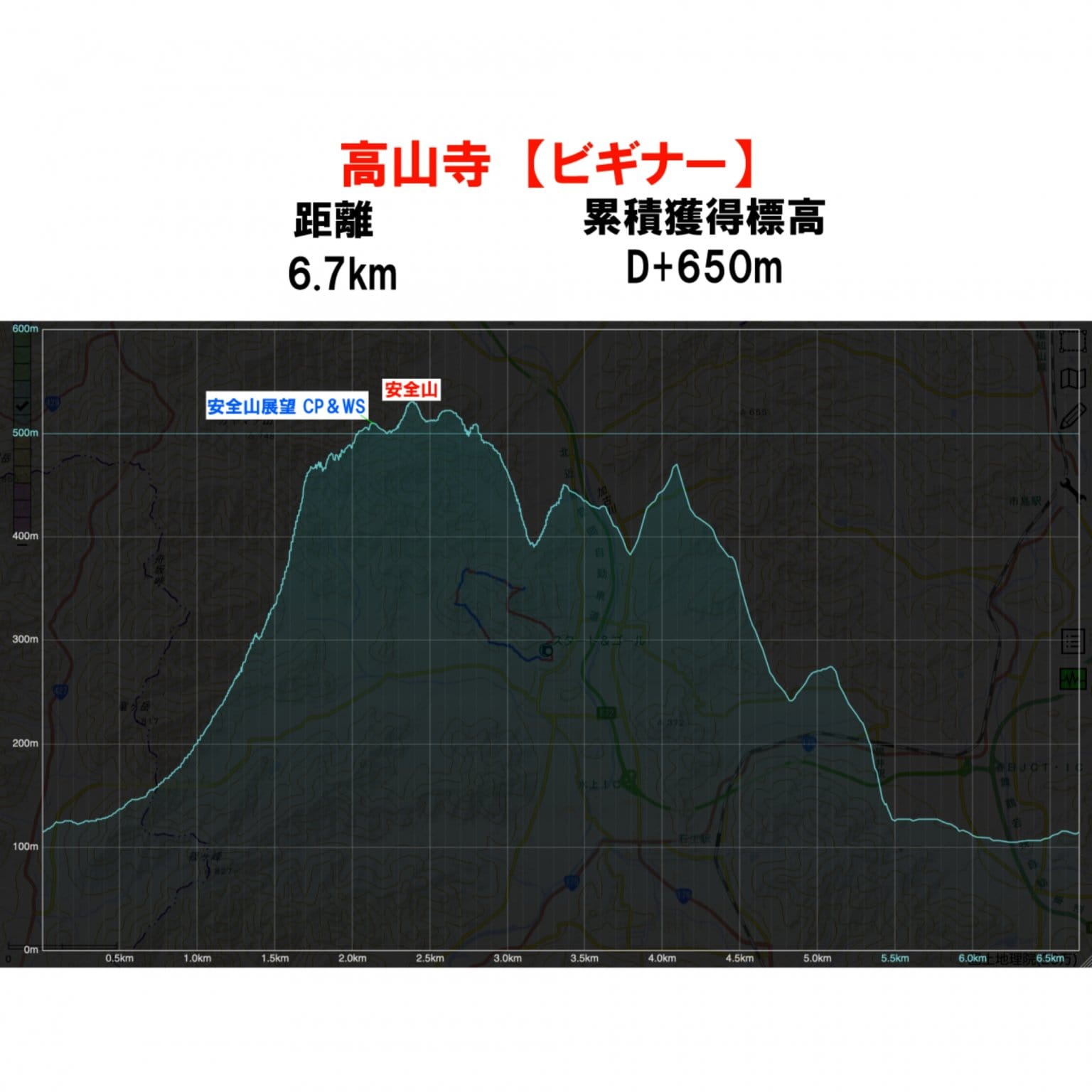 【コースについて】6.7Km(D+650m) 周回コース
