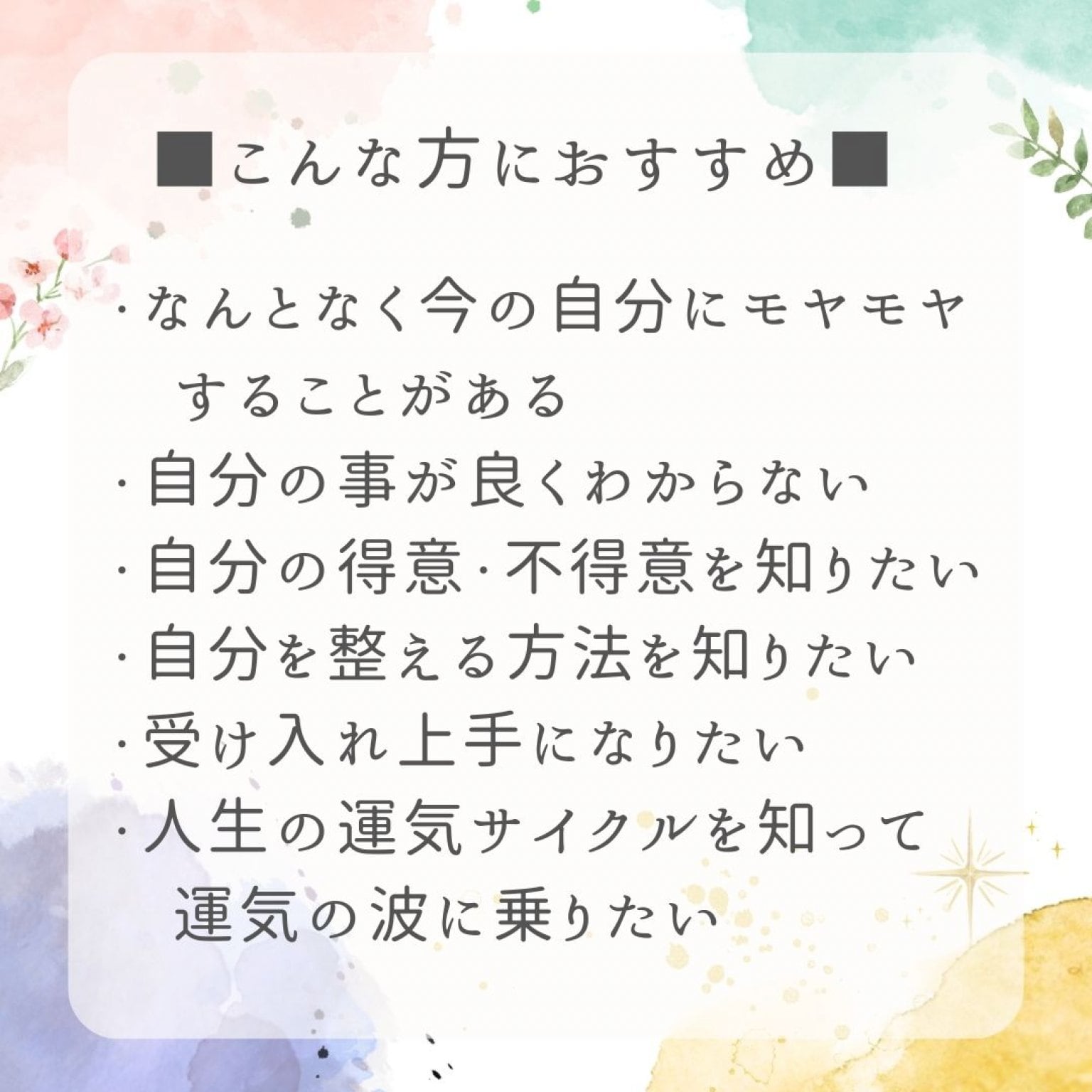 通常16,000円を、10,000円(税別)で受けられるセッションです。