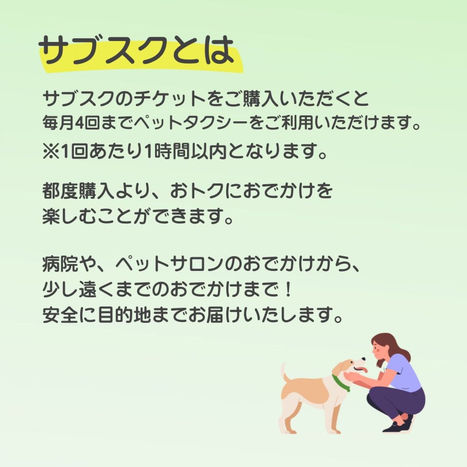 そんな定期的なペットの送迎が必要な飼い主様のために、都度購入するよりも断然お得な月額制(サブスクリプション)の回数券をご用意しました。