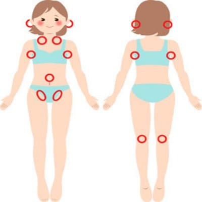 左鎖骨→右鎖骨→腋窩→臍→鼠径→膝窩→足首