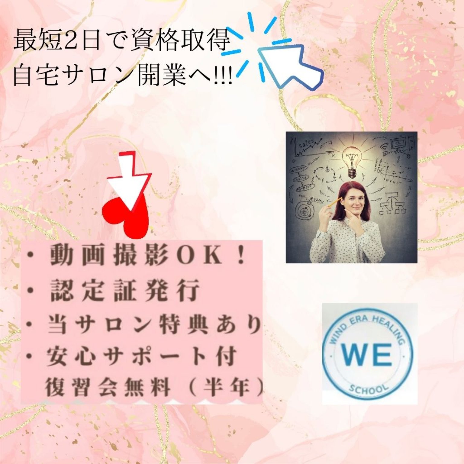 ②当スクール代表とマンツーマンでオンライン60分何でも相談会付♪(資格取得後1か月以内/1回・希望者のみ)