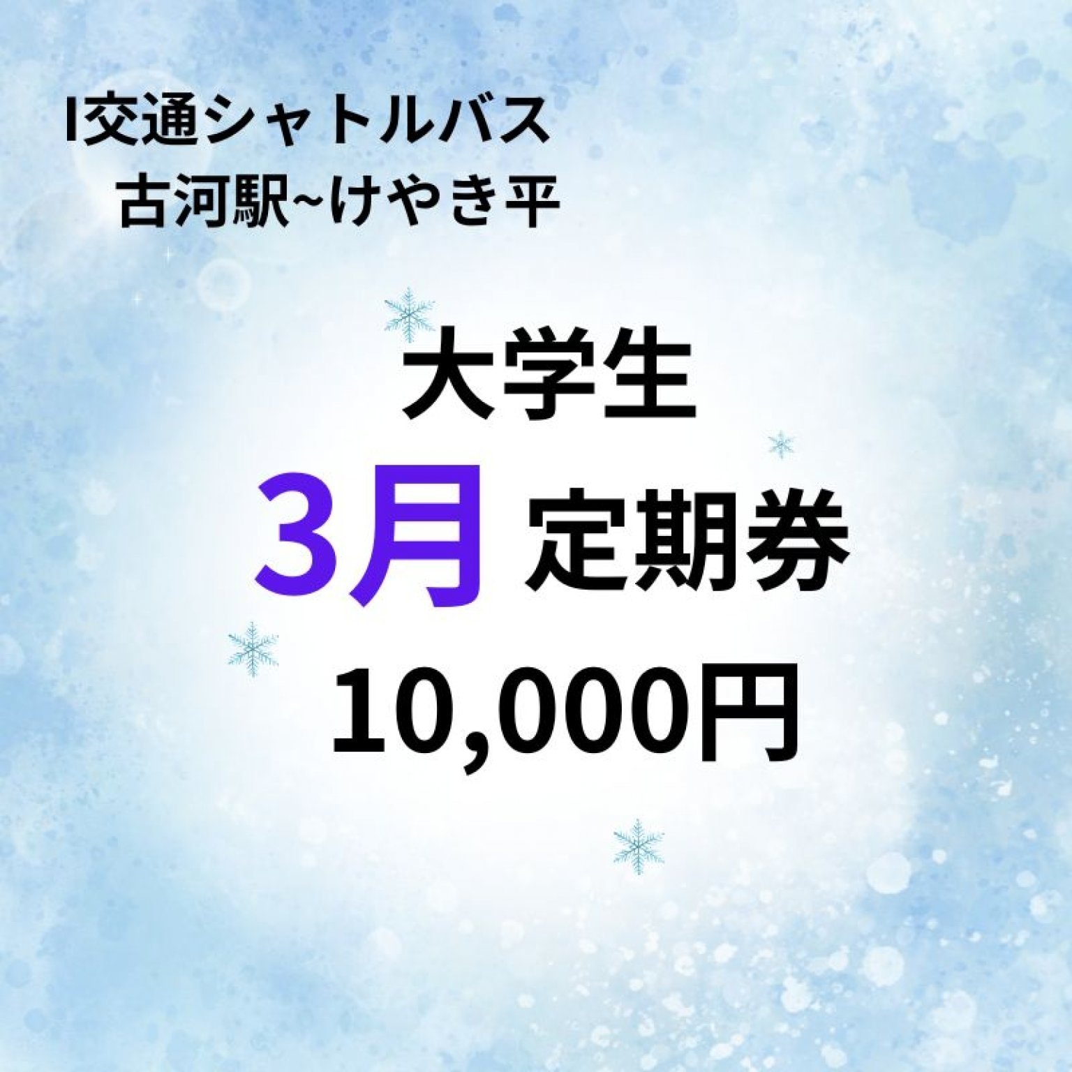 大学生用、3月の1ヶ月定期乗車券です。シャトルバスは古河駅⇔けやき平間を平日毎日運行しています。