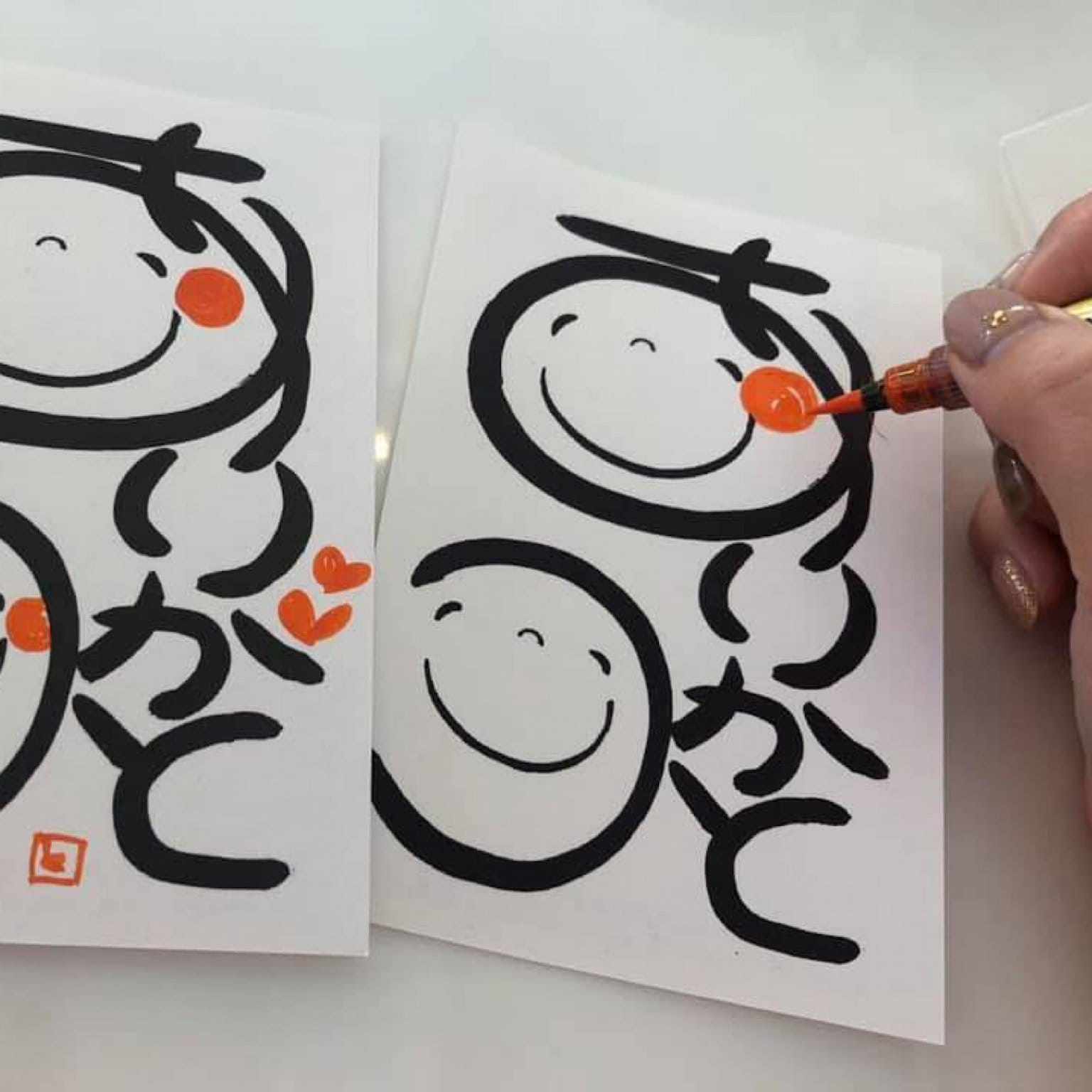 すると感謝の気持ちがぶわぁ〜っと溢れてきて、とても幸せな気持ちになり、たくさんの方に「ありがとう」を伝えたくなりました。笑い文字は『描いて半分渡して完成』ですが、相手を想って描くだけでこんなにも幸せな気持ちになれたことに驚きました。そして心が落ち着き癒されたことも驚きでした。たくさんの方にこの感覚を味わってほしいです。