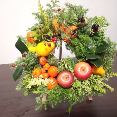 ・赤やグリーン 木の実を織り交ぜてオリジナルのリースができます。