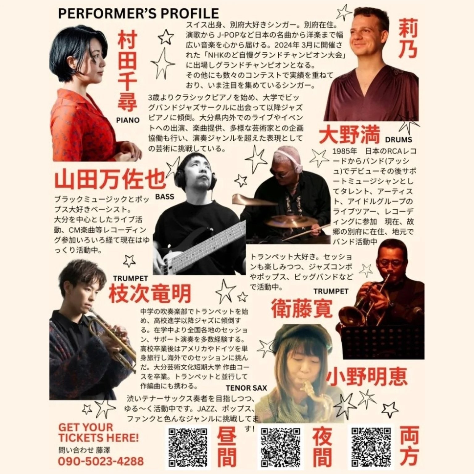 大分県内外でのライブやイベントへの出演、ミュージシャンへの楽曲提供やCM楽曲制作、多様な芸術家との複合イベント企画も行う。