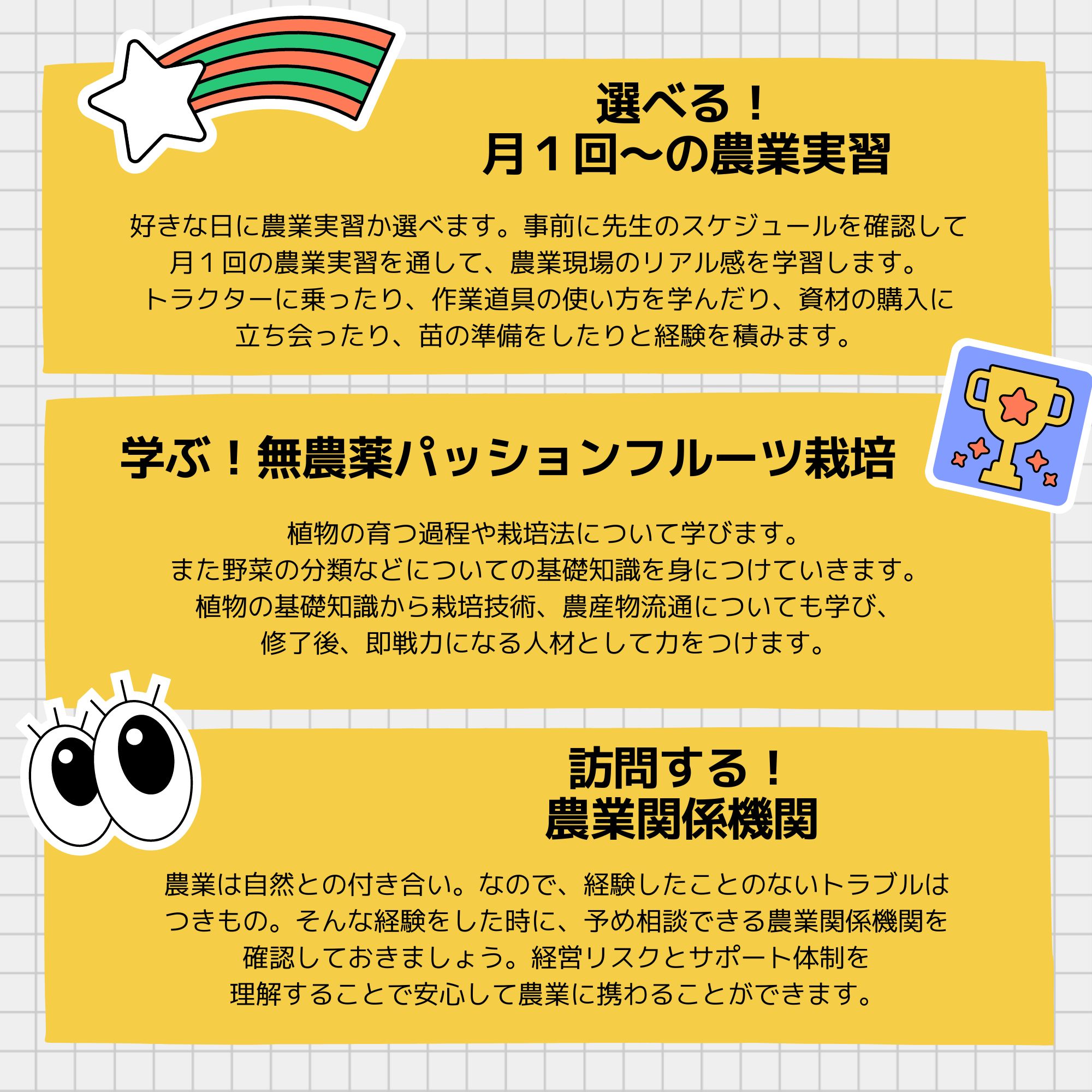①選べる!月1回〜の農業実習: