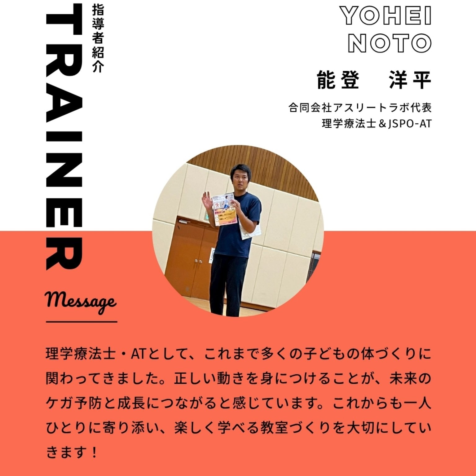 内容:総合運動指導、基礎体力・姿勢改善、体幹トレーニング など
