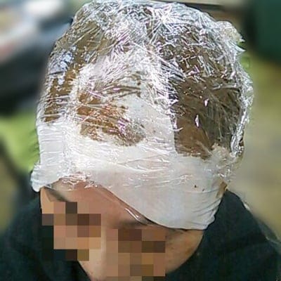 ハナヘナの1度染めの場合はオレンジ色になります。