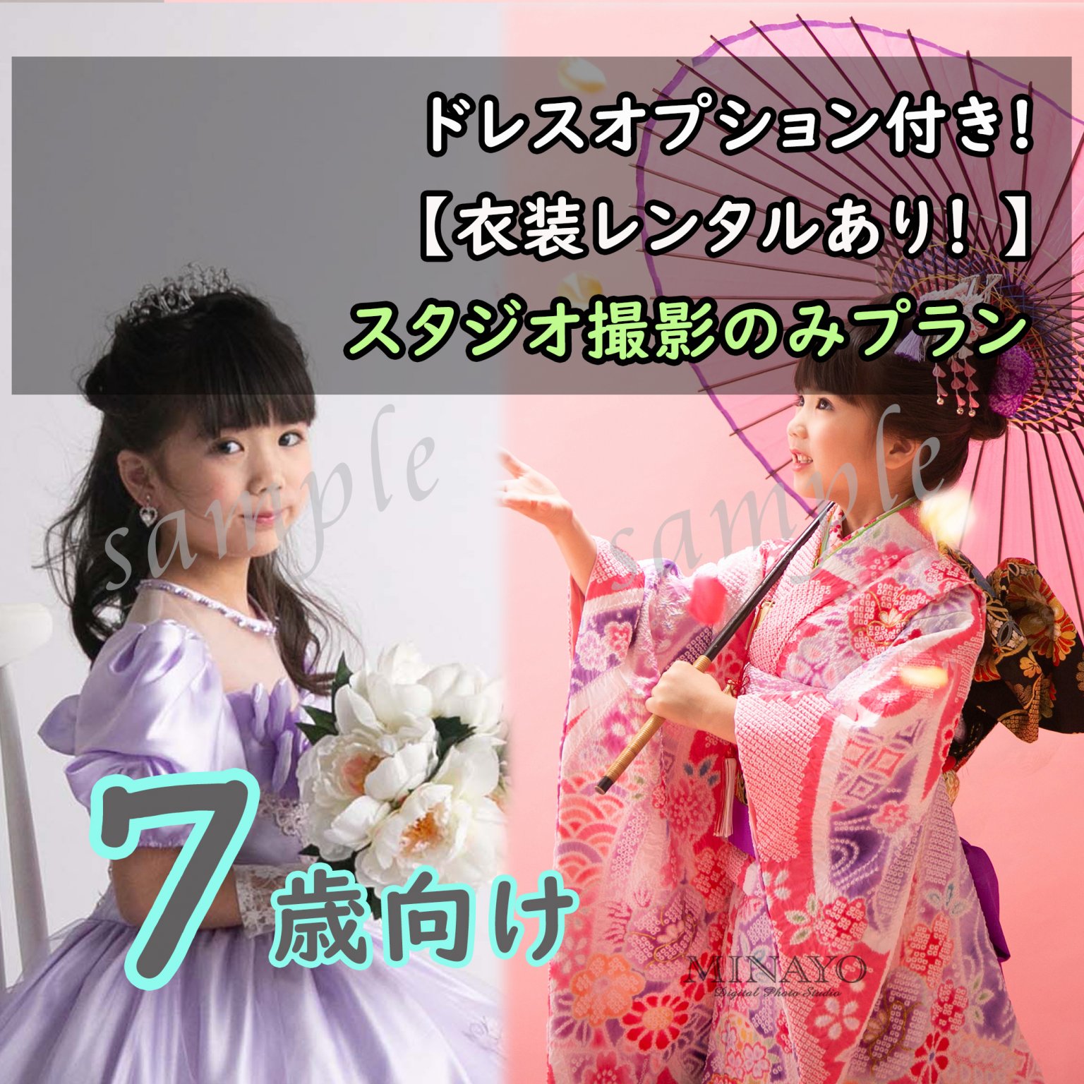 ◇【ミナヨの衣装レンタルあり!スタジオ撮影のみプラン】7歳向け・七五三記念撮影