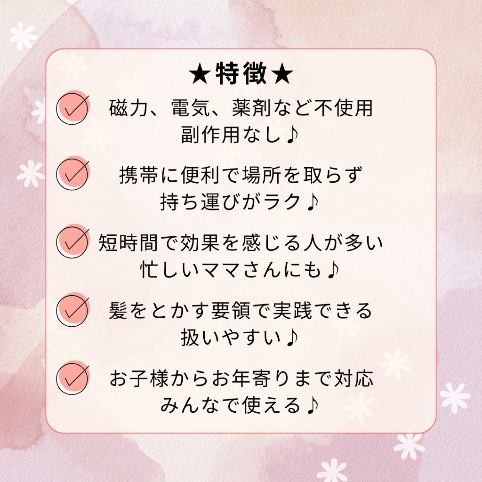 磁力や電気、薬剤等を一切使用していないので副作用がありません。