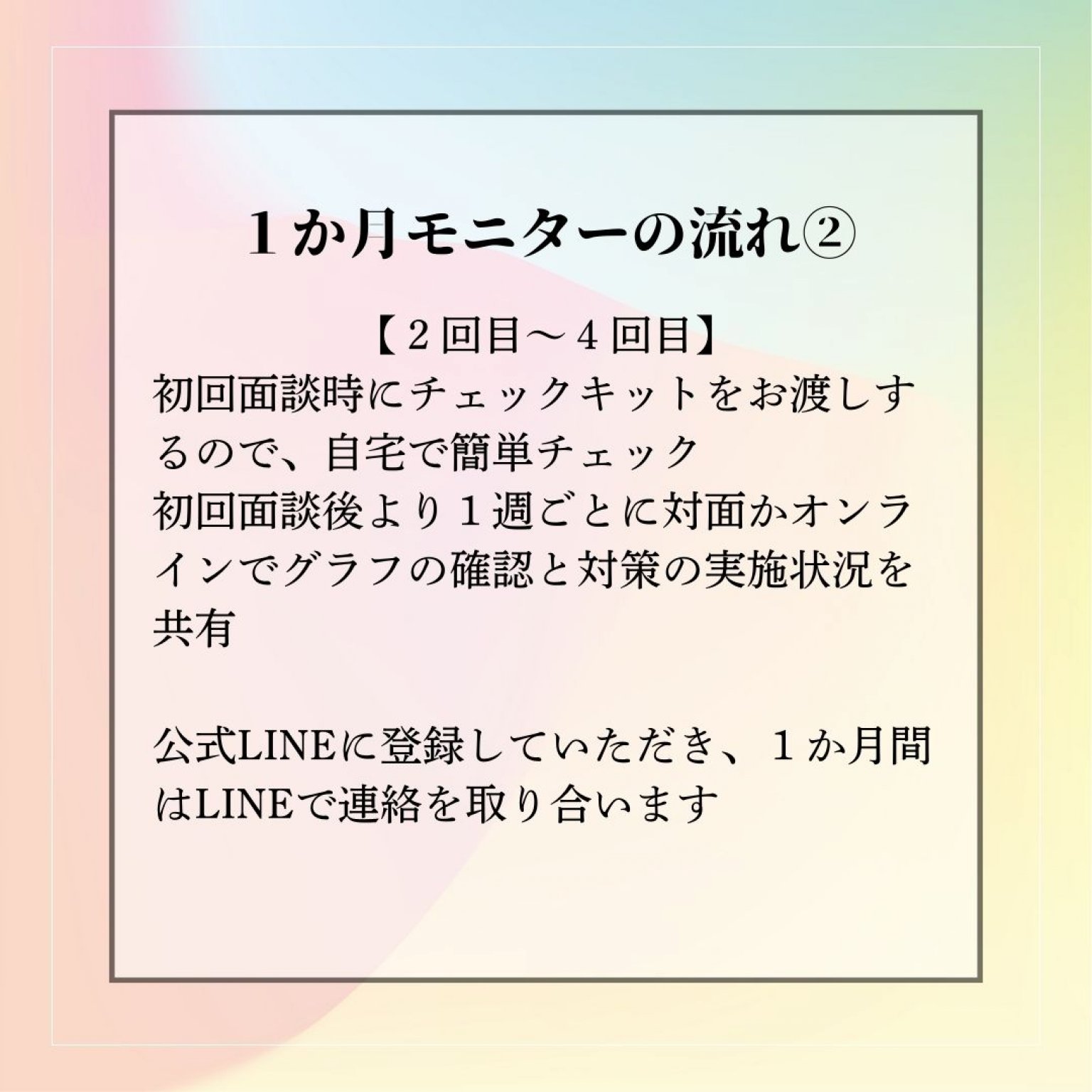 2回目〜4回目:zoomで面談か、来店できるかたは対面にて実施 グラフの変化や状況の共有をします。
