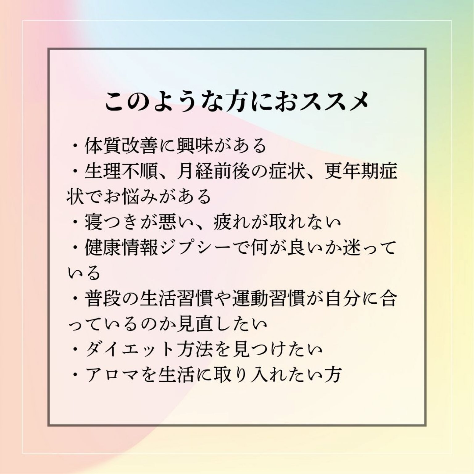 ・自分に合った食事や栄養、アロマを知りたい、確認したい人 etc...