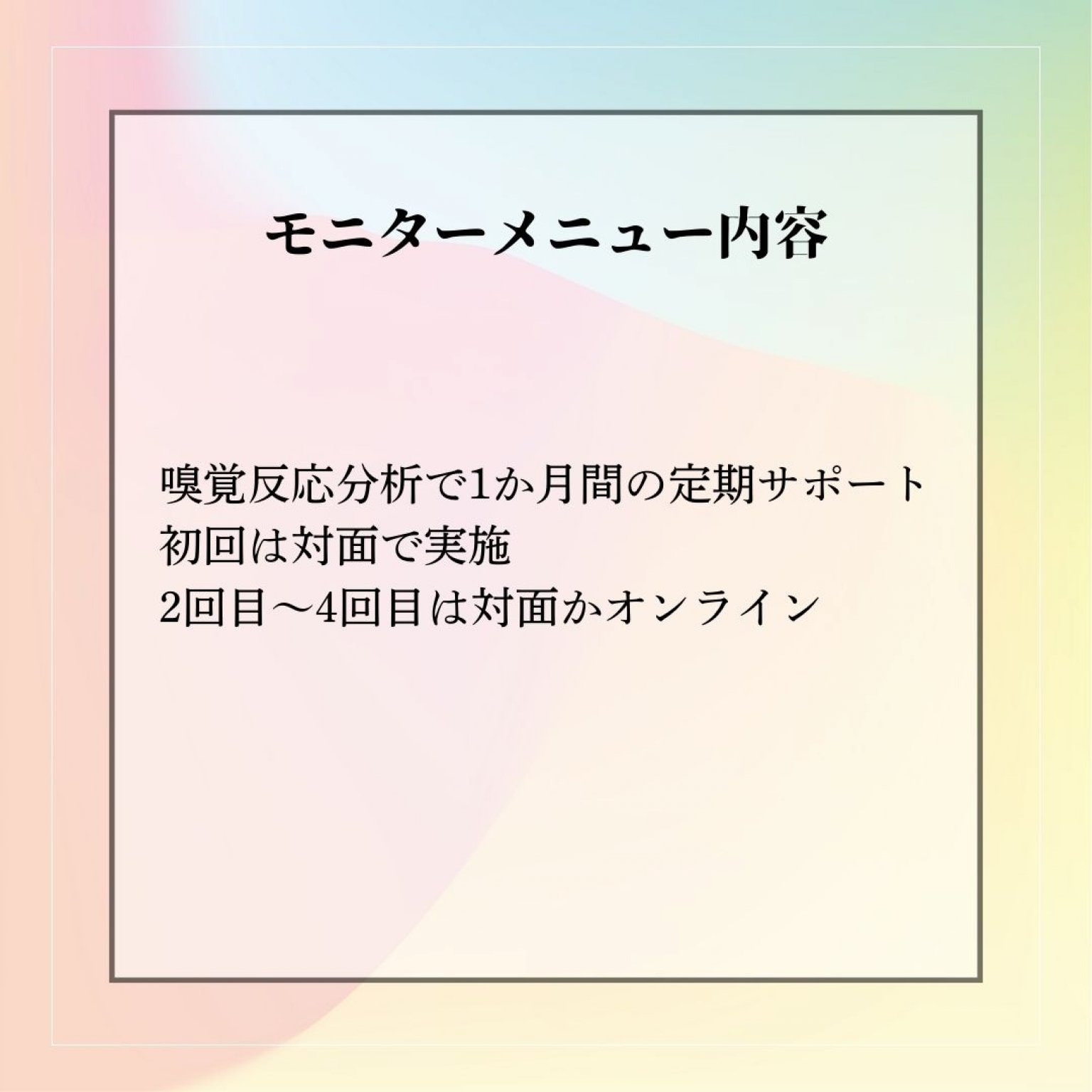 嗅覚反応分析で体質改善1か月サポートのモニター限定チケットです。