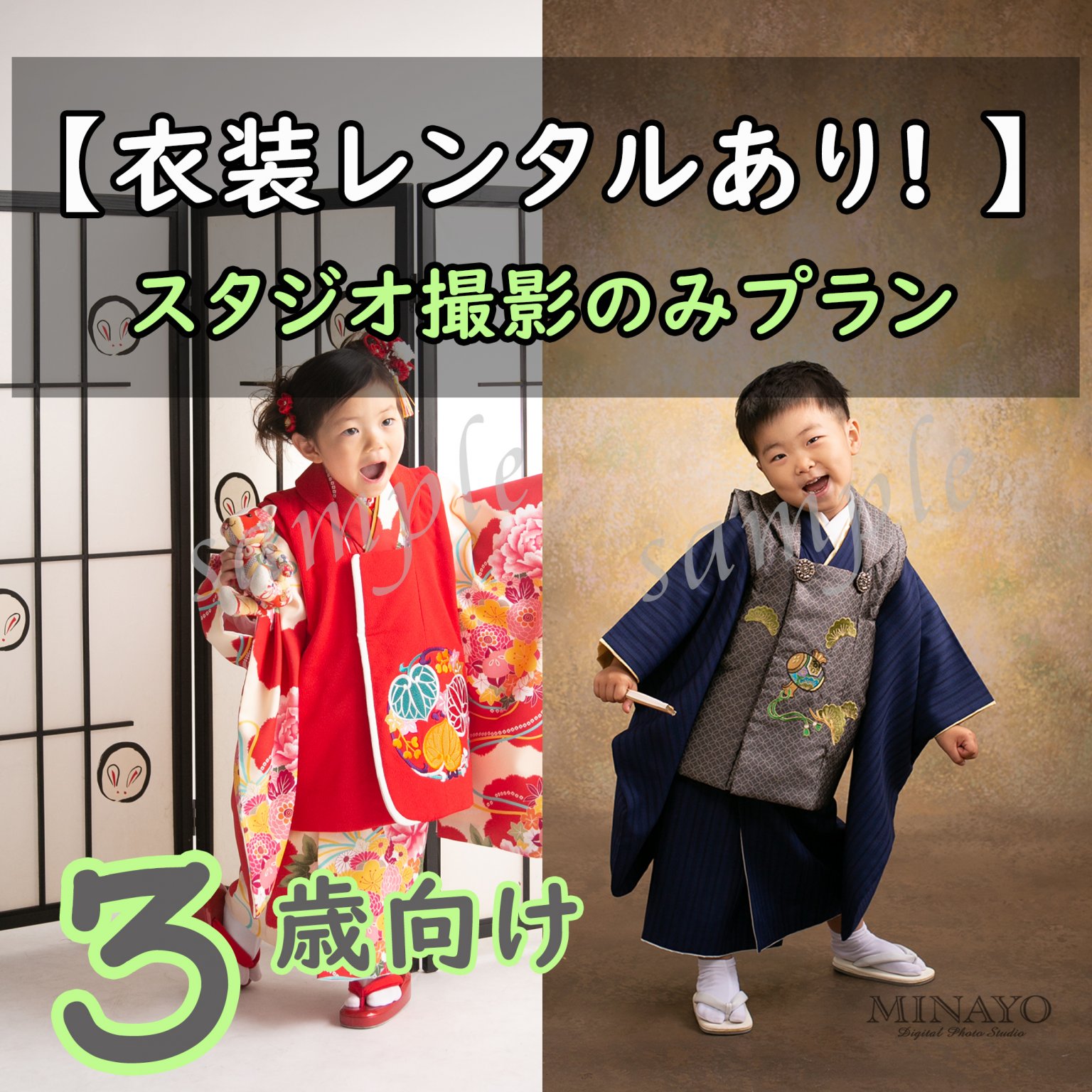 ◇【ドレスオプション付き!ミナヨの衣装レンタルあり!!スタジオ撮影のみプラン】3歳向け・七五三記念撮影