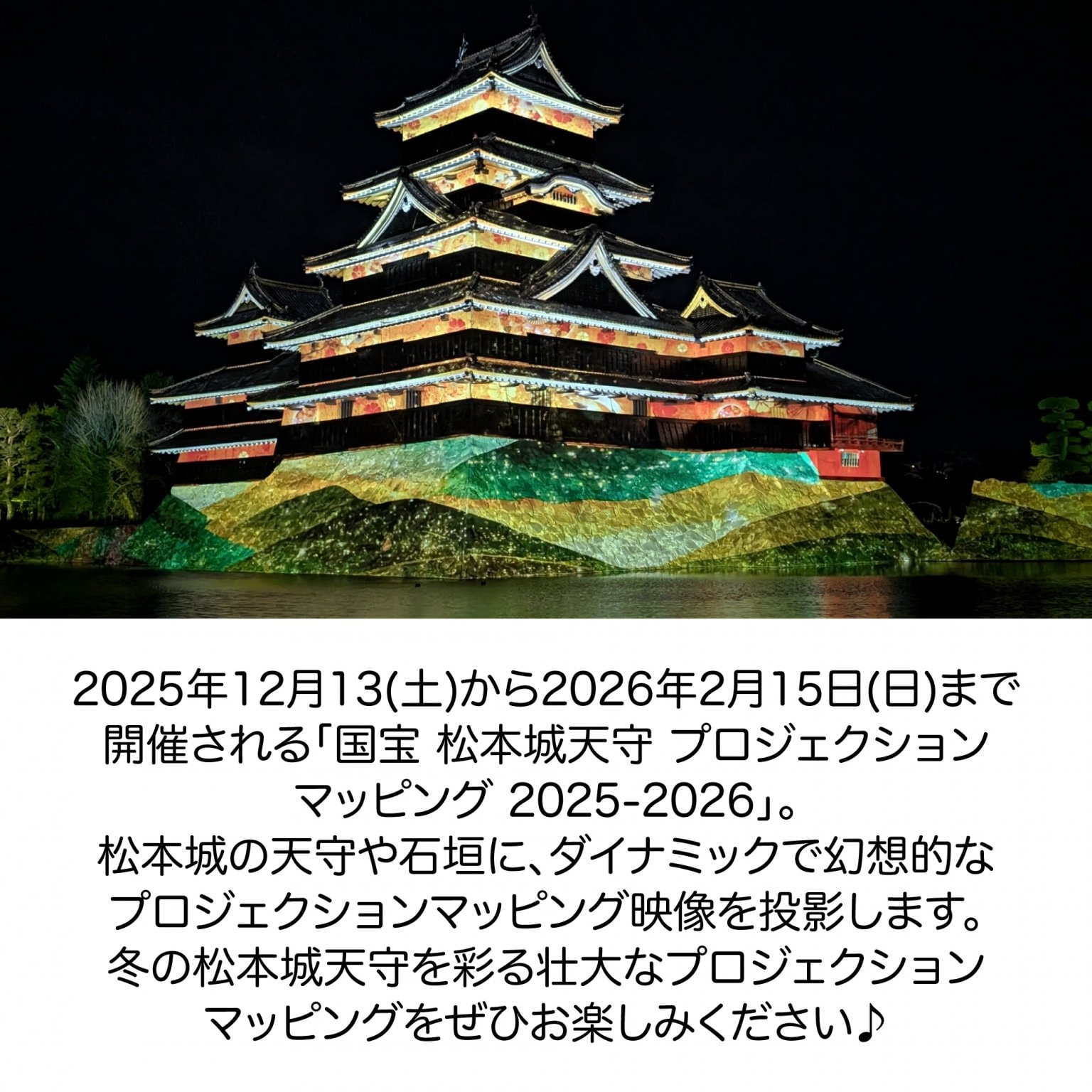 ホテルディナーブッフェの後は、松本城にて豪華絢爛・幻想的なプロジェクションマッピングをお楽しみください♪