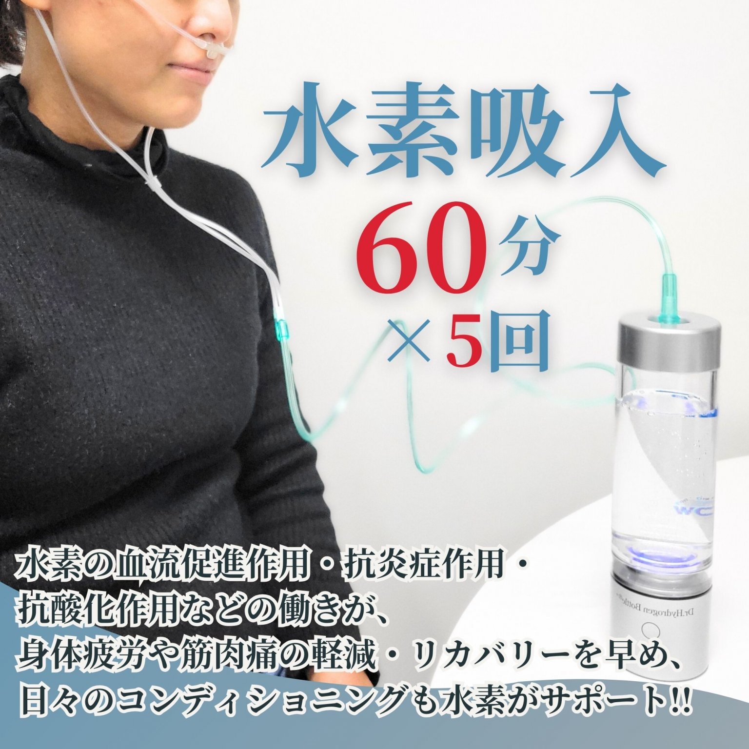 水素ガスを専用のチューブを使って鼻から吸入することで体内に水素を取り入れる療法です。