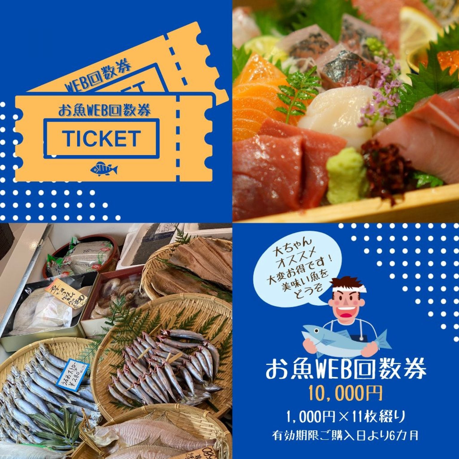 ○ご利用の際は①マイページ→マイウェブチケットから【お魚WEB回数券】をスタッフにご提示ください。