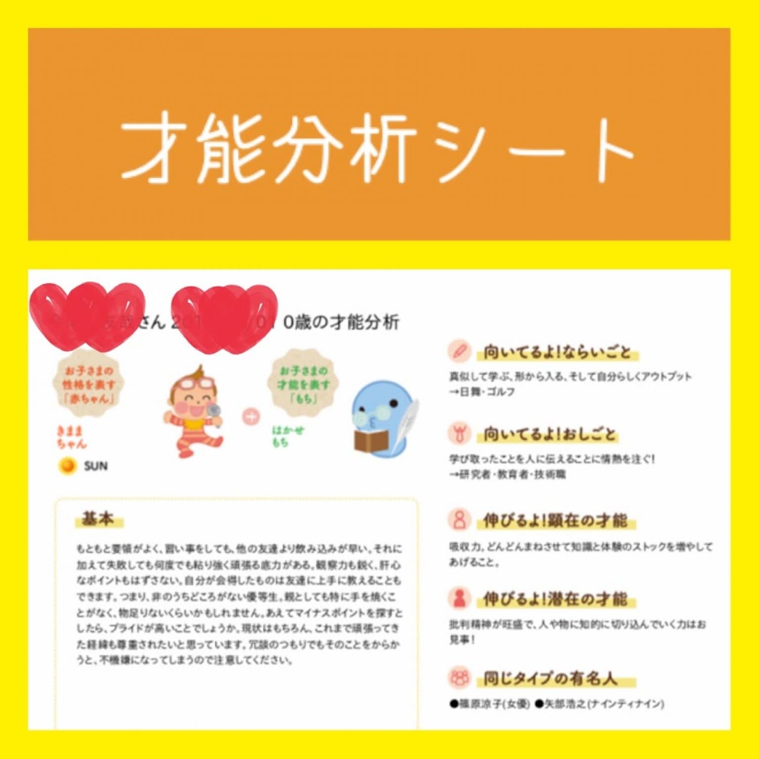 生年月日から個性や才能が分かる統計学のあかちゃんともち。0〜9歳のお子さま向けです。