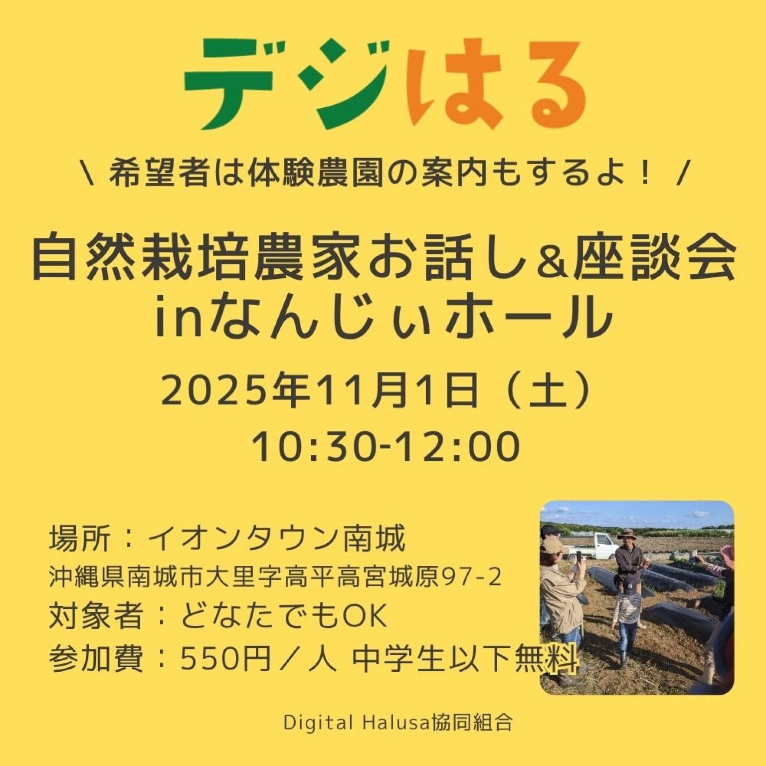 11月1日(土)10時半からイオンタウン南城「なんじぃホール」で「家庭菜園のススメ/無農薬農家さんのお話し&座談会」を開催いたします!