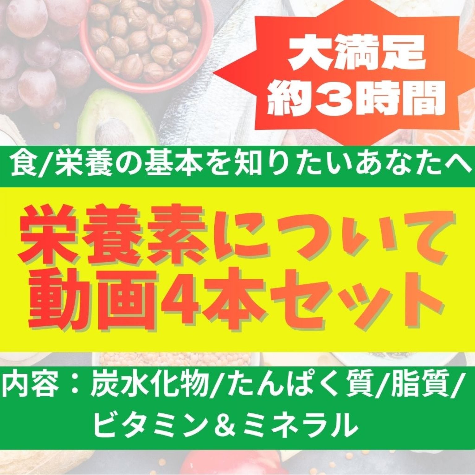 5~8章の栄養を動画内の資料と共に学ぶことが出来ます。(全12章)