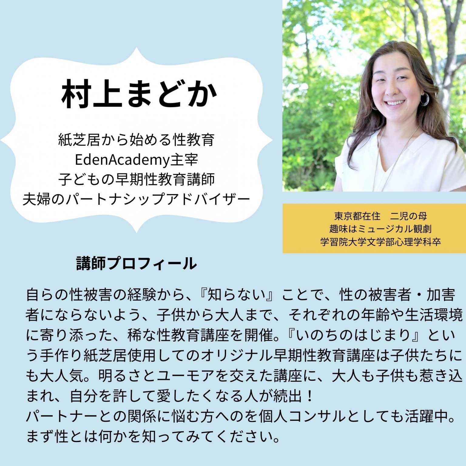 ②≪早期性教育講師、夫婦のパートナーシップアドバイザー≫