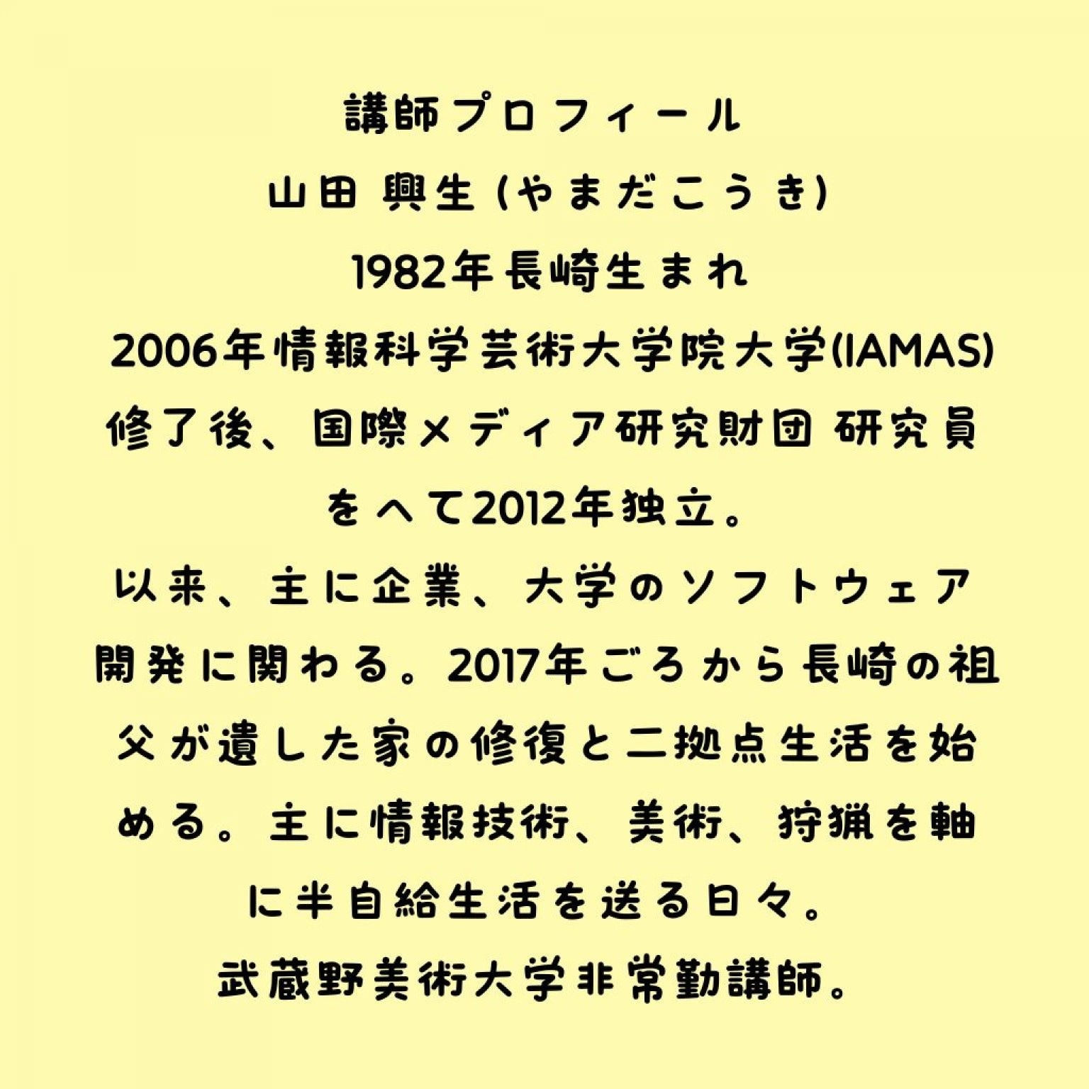 起業家であり美大の先生であり情報技術にたけており、狩猟ができて田舎暮らしで半自給生活を送っている山田氏。誰もが憧れる自由度も専門度も高いけれど実際はどうなのか。山田氏が普段の生活とそこに関連する様々な事象についてお話しされます。お茶など飲みながらゆったりとご参加ください。ワクワクな2時間の共有チケットとなります。