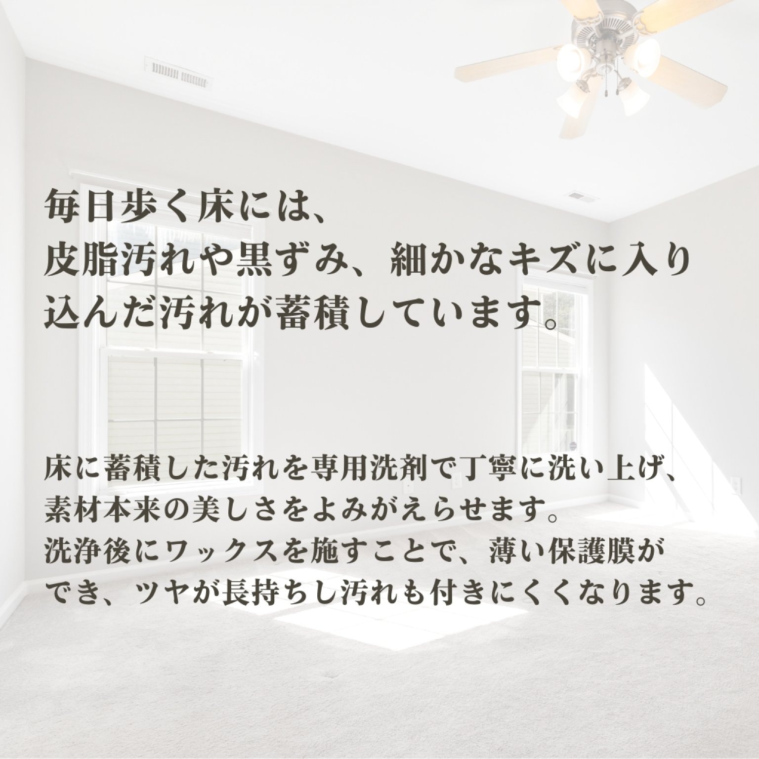 ・床ワックス1〜2層塗布(床材に応じて調整)