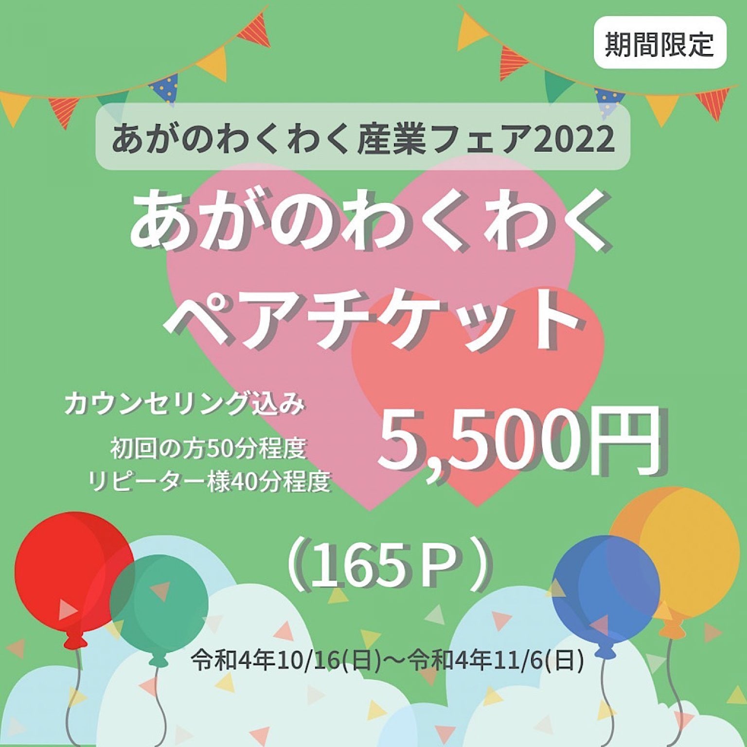 令和4年10月16日(日)〜令和4年11月6日(日)の期間中にご予約いただき、ご利用ください。